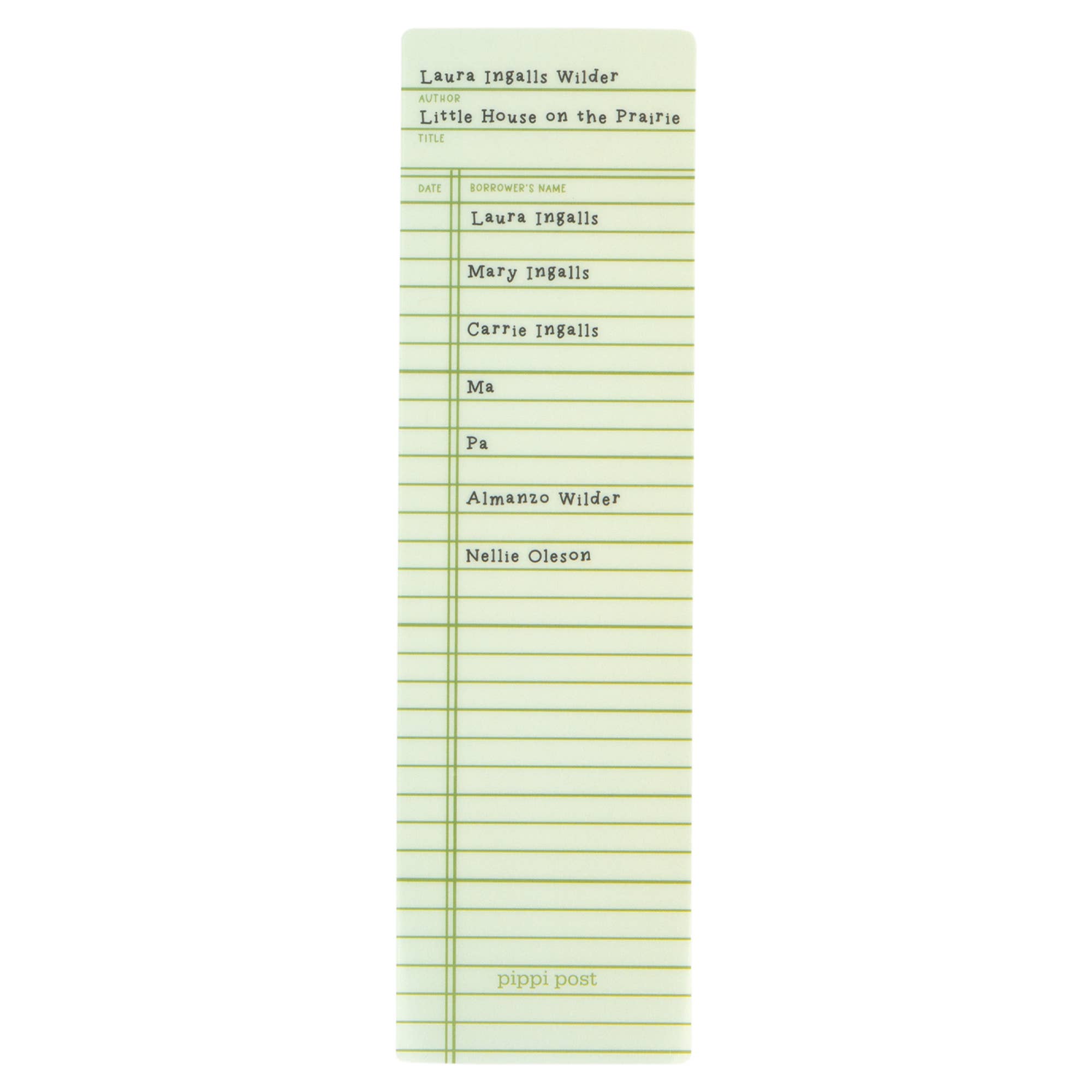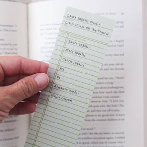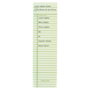 Take a trip to the prairie with this Little House on the Prairie Library Check Out Bookmark! Designed to resemble a vintage library checkout card, this transparent bookmark features Laura Ingalls, Mary, Ma, Pa, and more as past borrowers. A must-have for classic literature lovers, it’s the perfect way to mark your place in your next adventure!